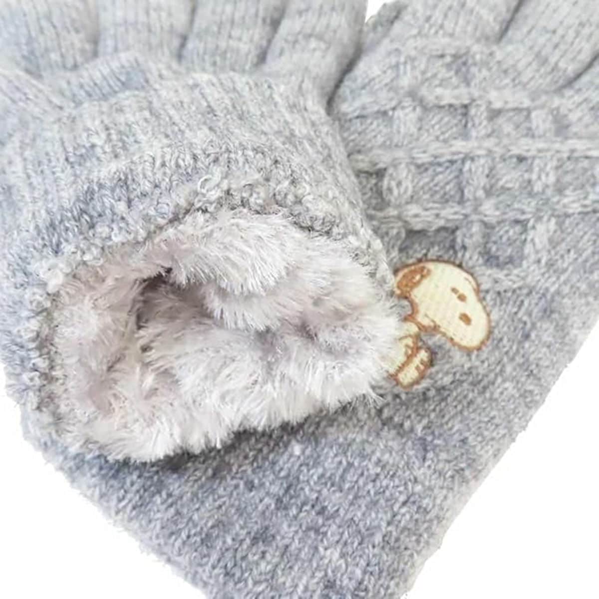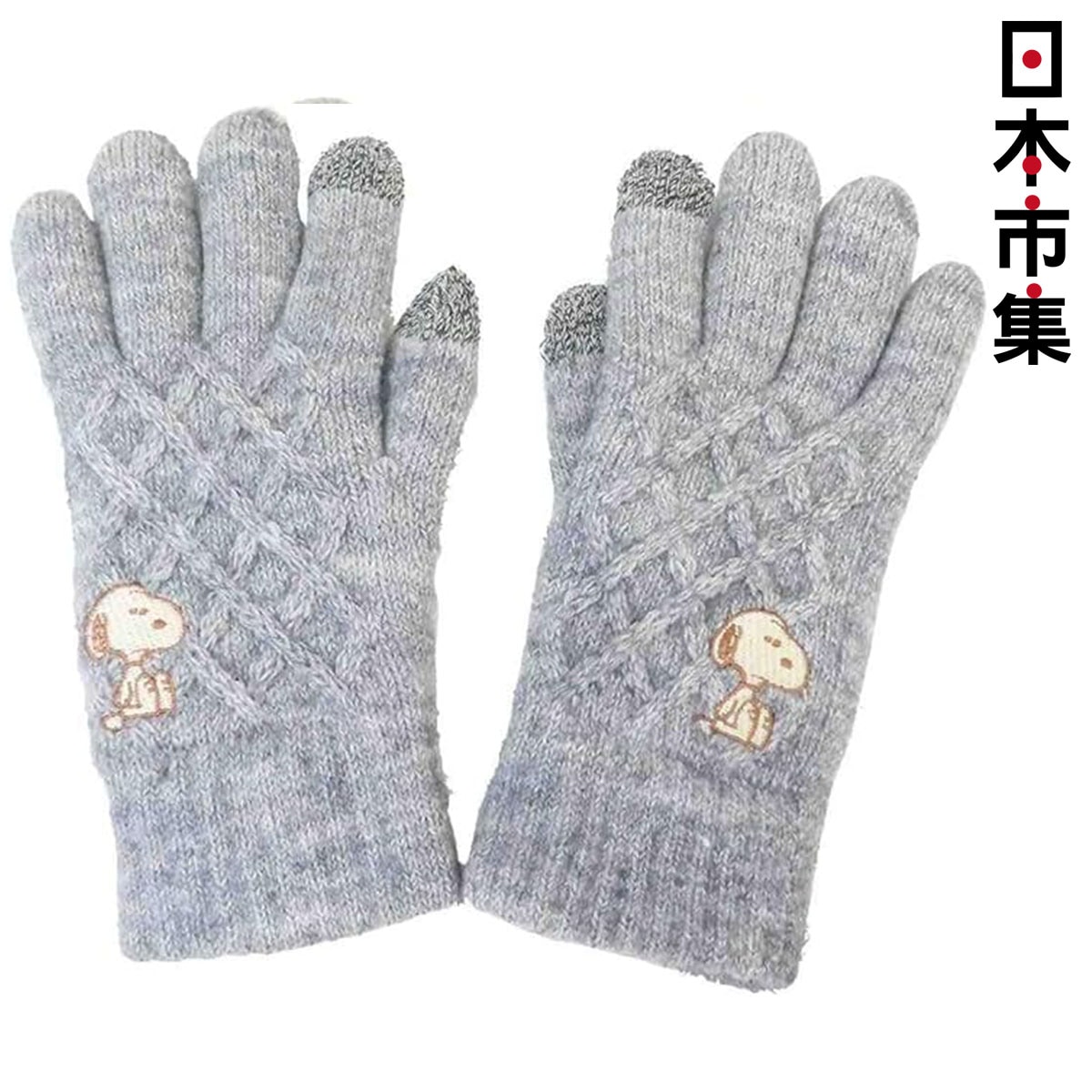 日版Snoopy 史努比家族 暖暖冬日 Snoopy 菱格立體針織 灰色 台灣製 屏幕觸控 保暖手襪手套 (454)【市集世界 - 日本市集】