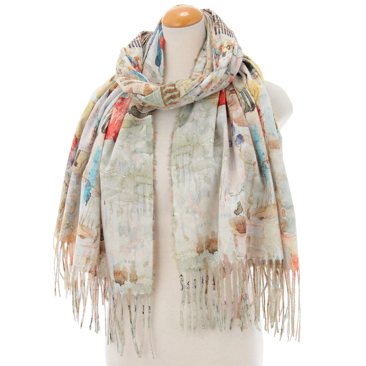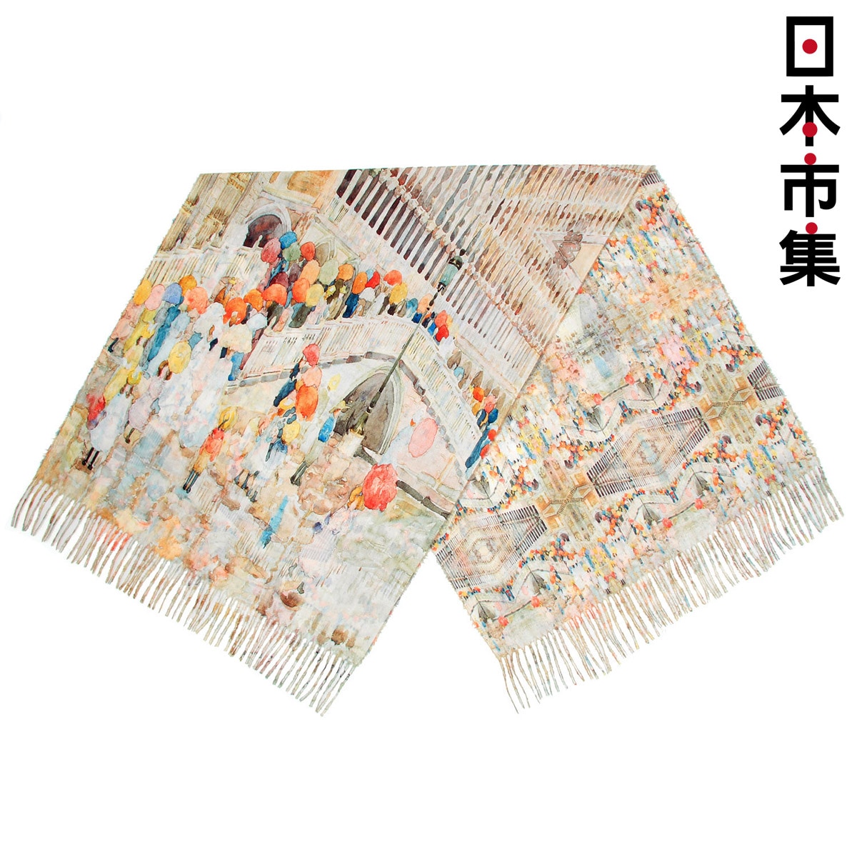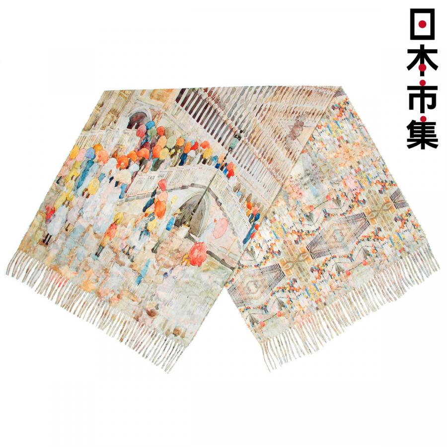日本 日和雜貨 藝術畫作 彩傘與橋 印花圍巾披肩 中厚款【市集世界 - 日本市集】