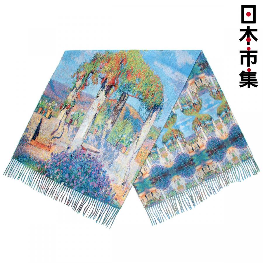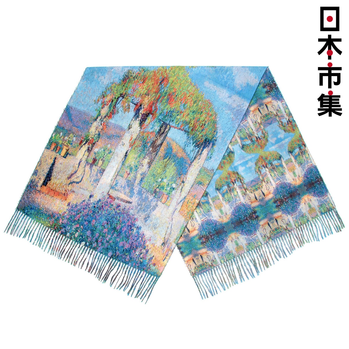 日本 日和雜貨 藝術畫作 亭臺園林 印花圍巾披肩 中厚款【市集世界 - 日本市集】