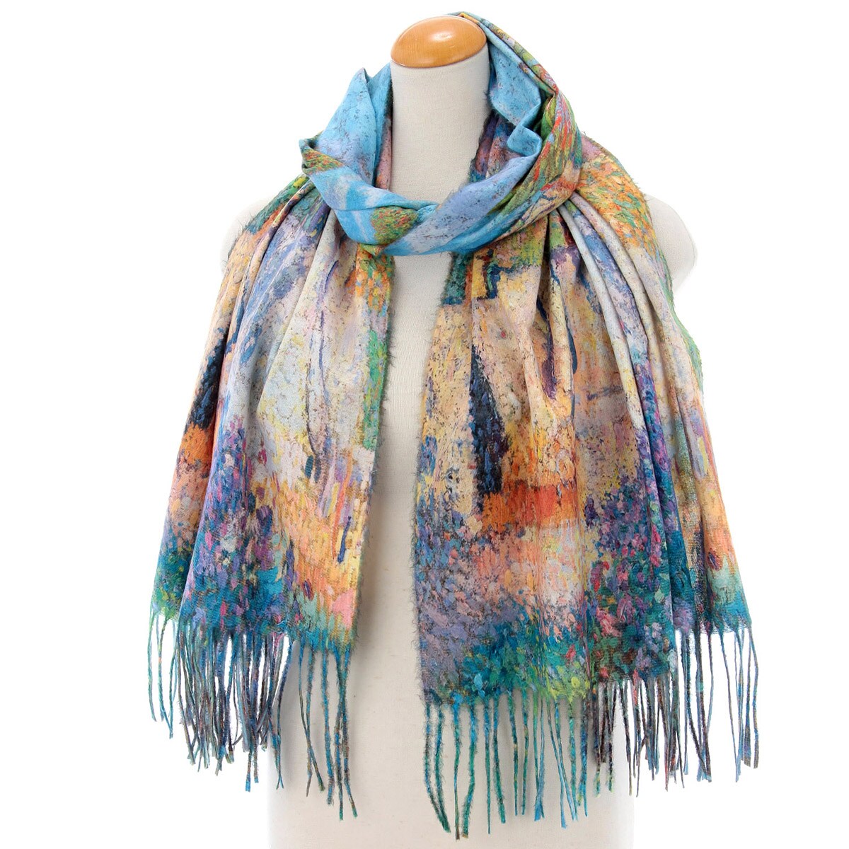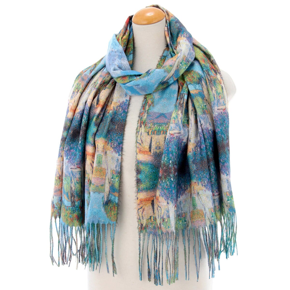 正反兩面均為繪畫風格圖案,隨意翻轉都能展現不同風格,一巾兩用更添時尚變化。