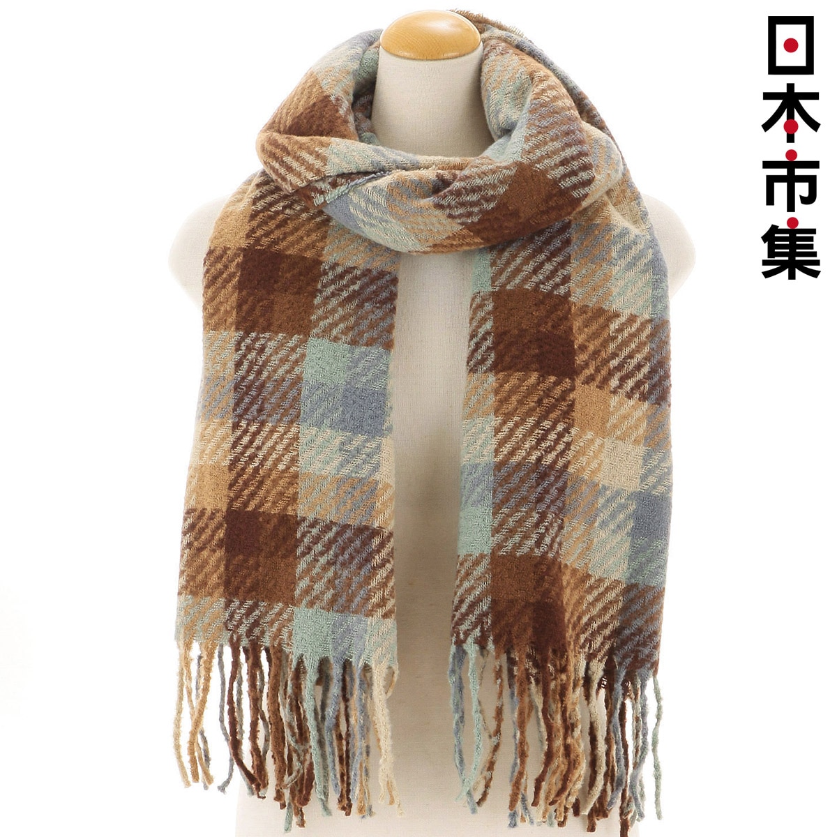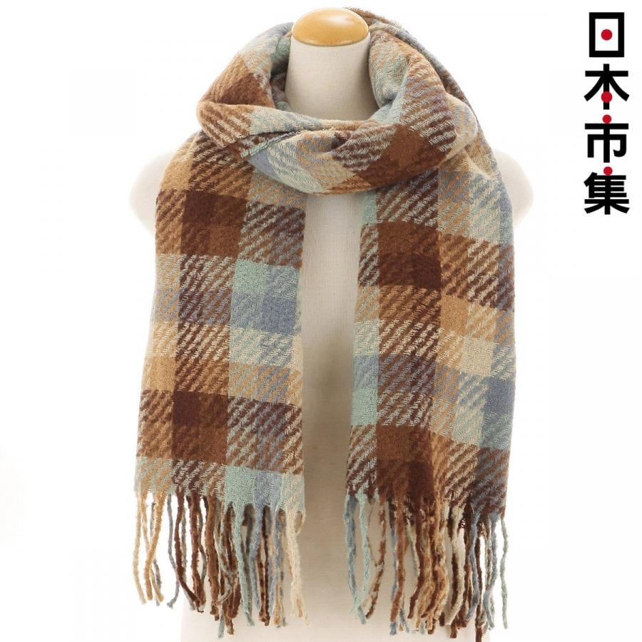 日本 日和雜貨 經典格紋 藍啡色調 柔軟絨感 保暖圍巾披肩 加長款【市集世界 - 日本市集】