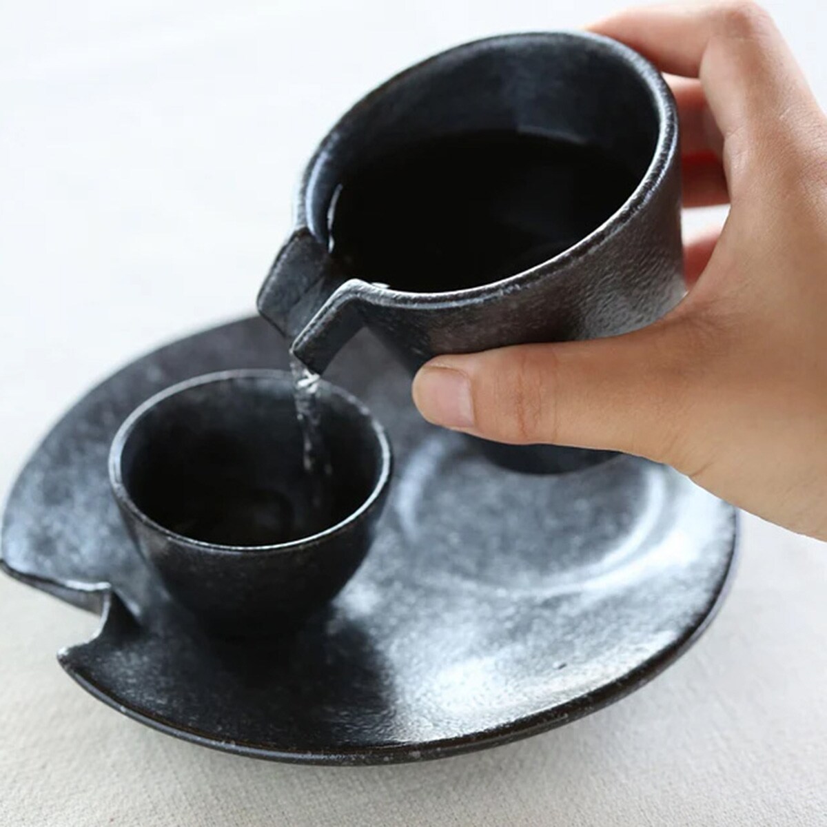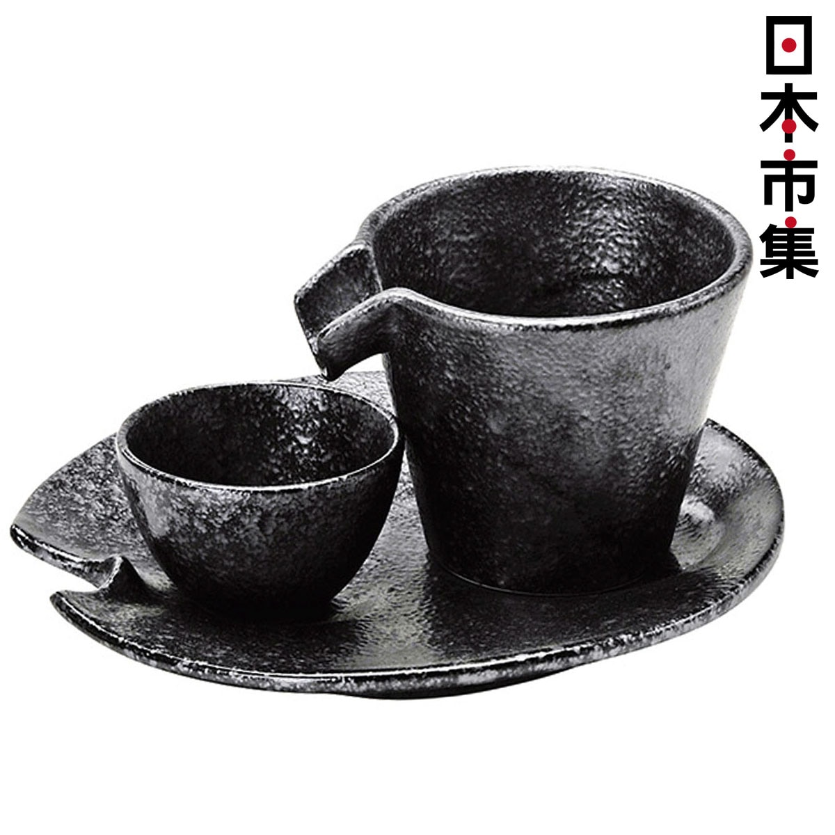 日本 金子小兵製陶所 流淌美學 冷酒器套裝 黑色 日本製 美濃燒 陶瓷清酒酒器套裝 禮盒 (1套3件)【市集世界 - 日本市集】