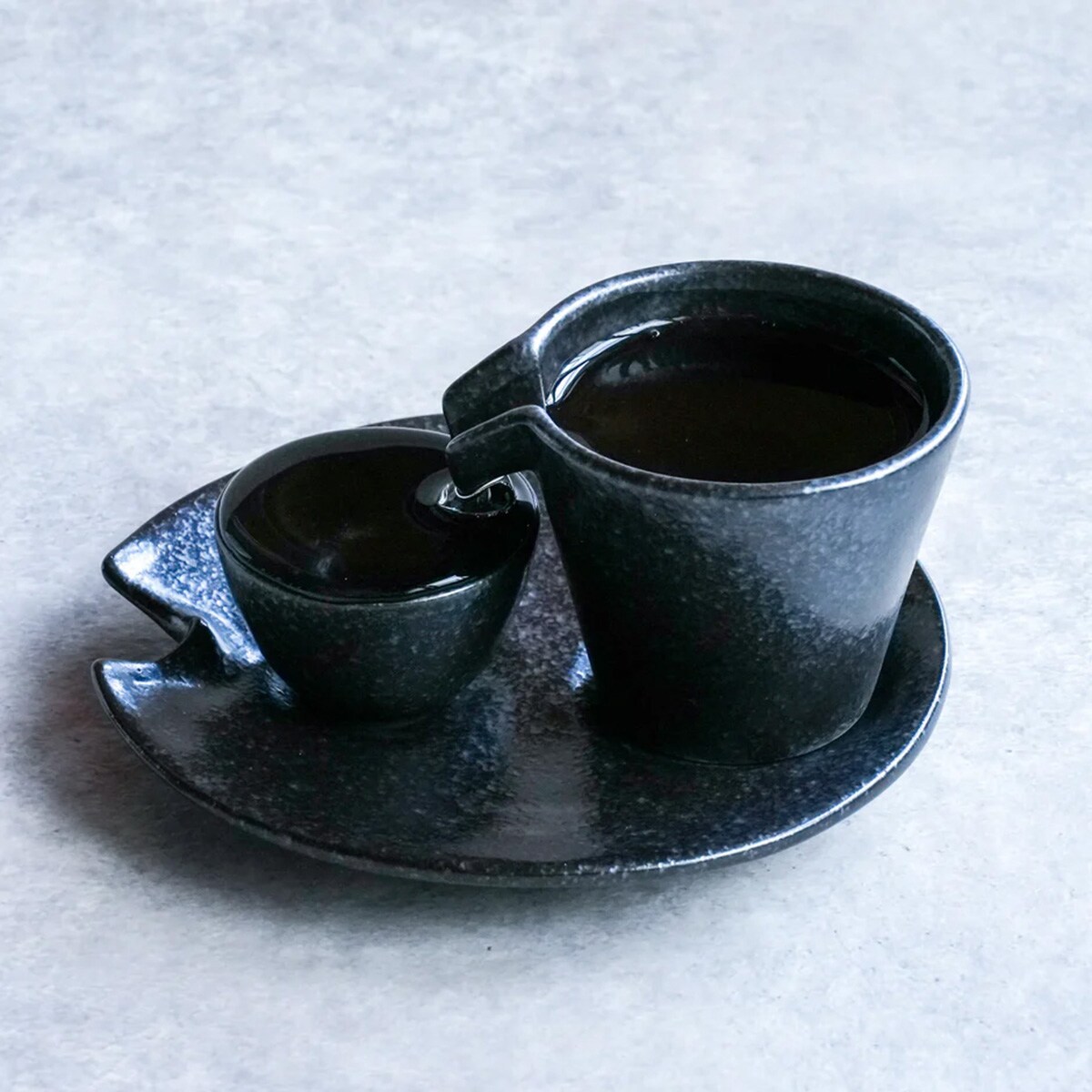 採用日本美濃地區傳統美濃燒工藝,以溫潤磁器打造冷酒器、酒杯與小碟三件套,簡約又具生活美感。