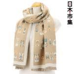 日本 狗雜貨 緹花工藝 可愛狗狗圖鑑 淺啡色 保暖圍巾披肩 中厚款【市集世界 - 日本市集】