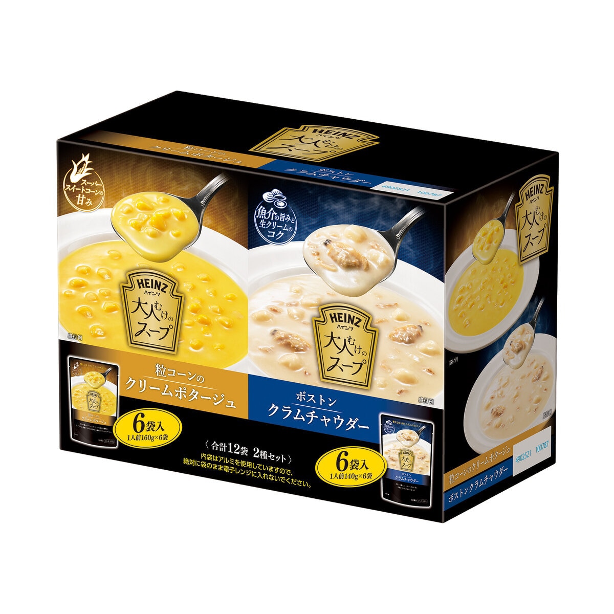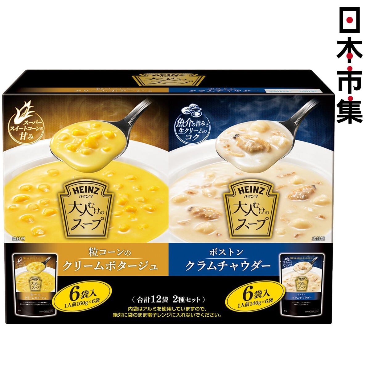 日本Costco直送 日版Heinz 亨氏 大人の2款即食濃湯組合 (粟米濃湯/周打忌廉蜆湯) 超值家庭裝 禮盒 12包裝 (787)【市集世界 - 日本市集】